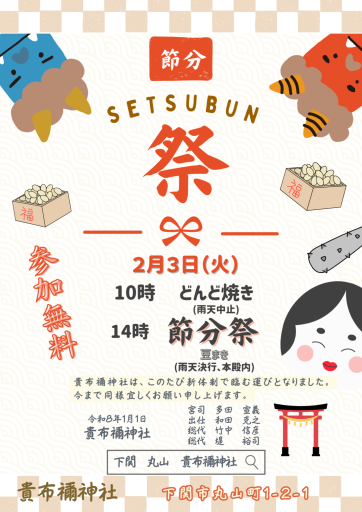 下関 貴布禰神社にて節分祭を行います。
